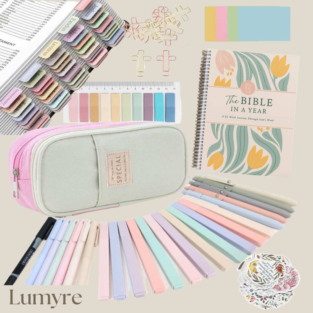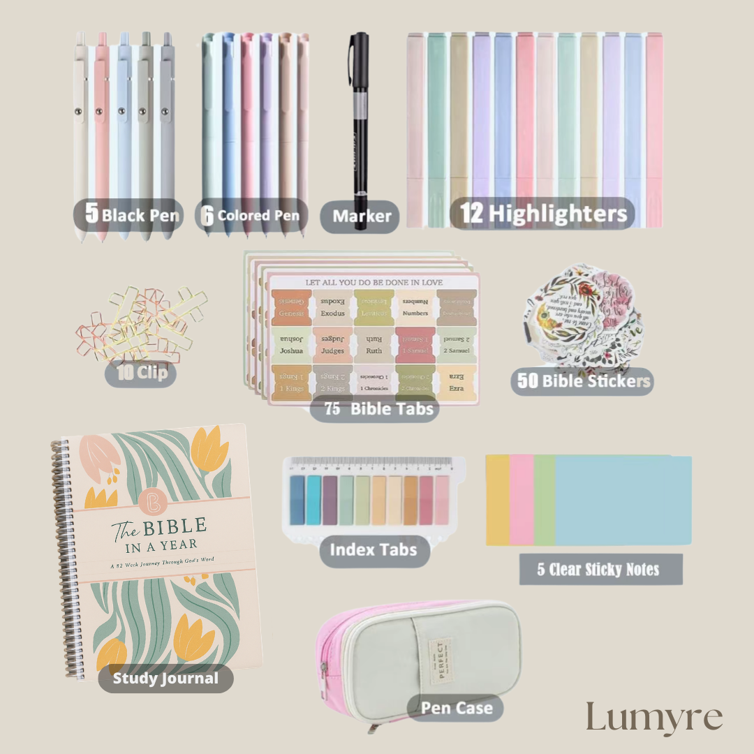 Inside you'll find a complete one-year Bible reading plan, thoughtfully structured to guide you through Scripture day by day.